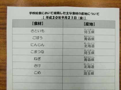 今日は、里芋ごはん、牛乳、鮭のみそマヨネーズ焼き、きんぴらごぼう、お月見汁です。