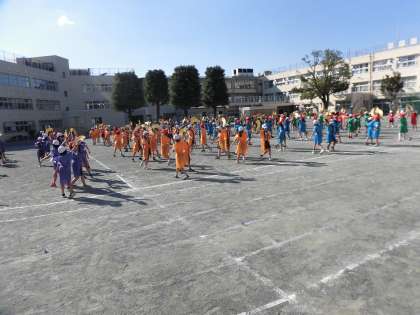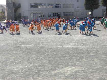 5時間目、快晴の下で表現練習を行いました。今日は、いつもの扇子に加え、法被も着て踊りました。法被を身に付けた子供たちは元気いっぱい踊り、また曲調に合わせて優雅に踊ることもでき、日々の練習の成果が見られました。一斉に扇子が開かれる時の美しさや、曲の歌詞に合わせて子供たちが跳ね回るところなどなど、見どころ満載です!残り1週間で、子供たちはまだまだ伸びると思います。運動会当日にご期待ください!