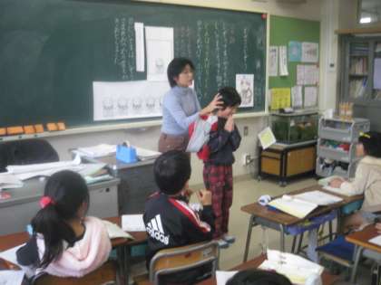 国語です。「かさじぞう」の読み取りでした。地蔵様やじい様になりきって音読したり、演技したりして気持ちを考えます。楽しいそうに取り組んでいました。そのため、ワークシートにもしっかり書けました。