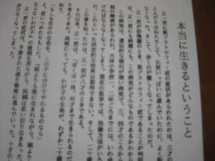 道徳の授業でした。「本当に生きるということ」という筋ジストロフィーで亡くなった人の資料を使って考えました。本当に生きるとは、「毎日を一生懸命生きる」「父母に感謝の気持ちをもって生きる」「悔いなく生き抜くこと」などなど・・・。子供たちは、命の大切さについて、本当に深く考えていました。