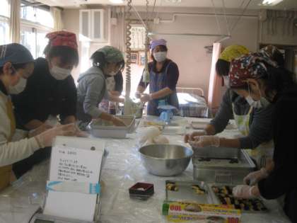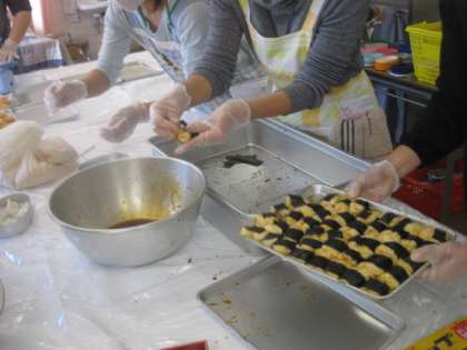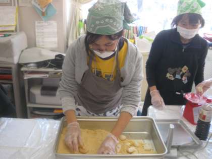 お母さんたちが、おいしい「きなこ味」と「のりをまいた醤油味」を作ってくれました。