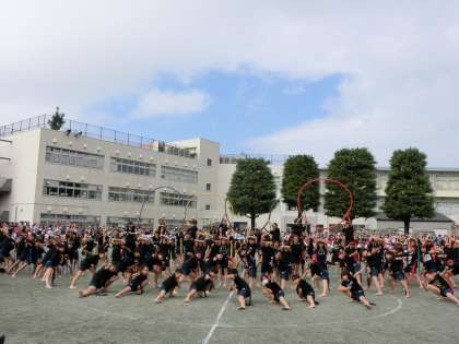 本日は雨が心配されましたが、無事に運動会を開催することができました。音楽クラブの皆さんのファンファーレから始まった開会式。練習を重ねた応援団をリーダーとする全校応援。そして、5年生の見事な南中ソーラン節の表現と、オリンピックを表現した五輪のマークのフィナーレ。素晴らしいスタートをきることができました。近隣の地域の皆様一日ご迷惑をおかけしますが、どうぞよろしくお願いいたします。