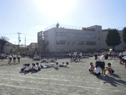 やはり運動会の演技の最後をしめくくるのは6年生の表現運動。最上級生としての誇りをもって練習を重ねてきました。「生きる〜手をとりあって〜」をテーマに精一杯表現しました。
