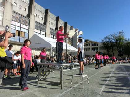 さあいよいよ閉会式。まずは今年から新設された応援賞。今年の応援賞は白組が勝ち取りました!おめでとうございます。音楽クラブの演奏もとっても立派でした!
