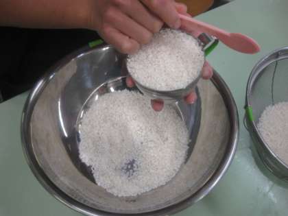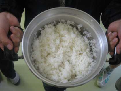お米を計り、水を入れ、火にかけ、そして、炊きあがりました。