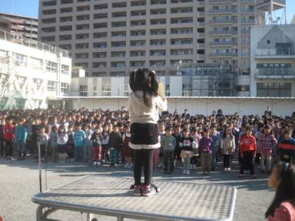 2校時、2学期の終業式を行いました。冬晴れの下、校長先生の話、代表児童の話、そして校歌を歌いました。今日は、2学期がんばった自分をほめる日です。ご家庭でも2学期を振り返ってほめてあげてください。