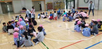来年一年生になる幼稚園、保育園の子を呼んで、「どうぞよろしくの会」を開きました。これから、学習発表会の練習を見に来たり、学校の様子を教えたりと、仲良くなる機会がたくさんあります。