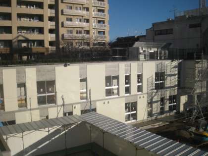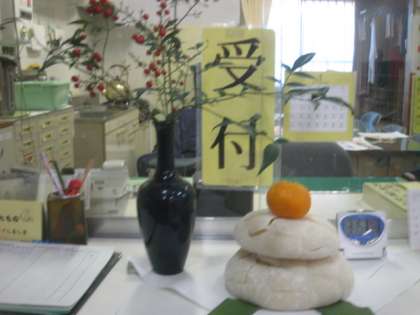 学校では、塚戸小学校の皆さんが、11日の始業式の日に元気に登校するのを待っています。主事室前には、幼稚園の「もちつき会」でついた鏡もちが飾ってあります。東校舎もほぼ出来上がってきました。