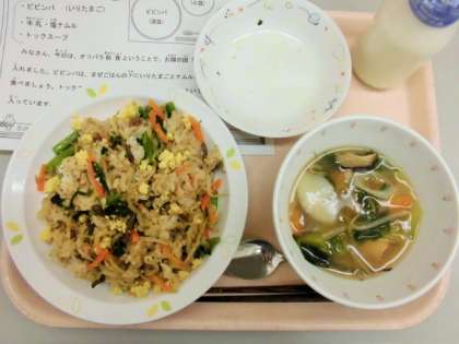 今日は、ビビンバ用混ぜごはん、ナムル、トックスープです。