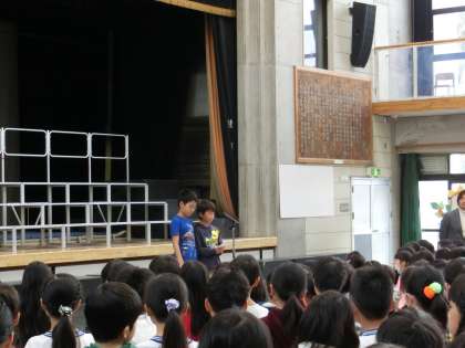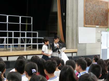 また、代表委員会からは、ふくの輪プロジェクトの結果90リットルの袋5袋、約110kgの洋服の寄付があったことや、給食委員会からは、マナーアップキャンペーンの結果を報告してくれました。子どもたちも、みんなのためになったり、生活がより良くなったりするように頑張って活動しています。