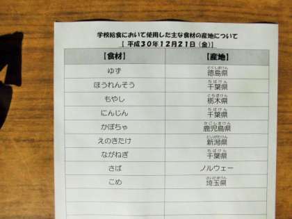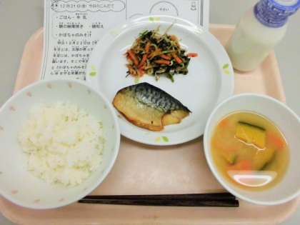 今日は一足早い冬至献立ということで、魚には柚子を、みそ汁には南瓜を使っています。