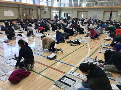 毎年思いますが、この人数の子ども達が取り組む体育館めいいっぱいの書き初めは壮観です。