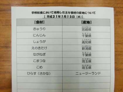 ※今日は、小正月ということで一年の無病息災(病気をせず、健康で幸せにいられること)を願って小豆粥を食べる習わしがあります。給食では、今学期初日に雑炊を提供しているので、今回は小豆粥ではなく、赤飯にしました。