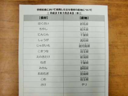 今日から全国学校給食週間です。初日の今日は、明治22年の給食が始まったひの献立を再現し、現在ならではの味噌汁やデザートの果物を付け加えました。