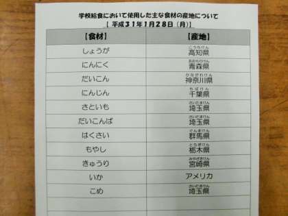 1/28 今日の給食
