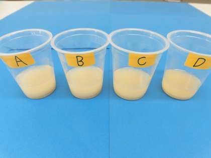 昆布、煮干し、かつおぶしの出汁と、出汁なしのお湯で味噌を溶いたものの4種類です。