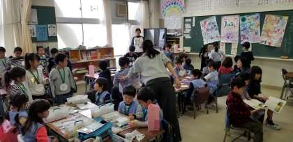 来年度1年生になる幼稚園、保育園の子たちに「小学校のことを教えてあげよう」という学習を行いました。そうじの仕方、給食の配膳の仕方、授業のことなど、グループに分かれて、優しく言葉をかけながら、教えていました。ご協力していただいた幼稚園、保育園の皆さん、ありがとうございました。