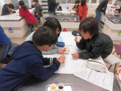 5年生は、だしの飲み比べの次にみその飲み比べを行いました。