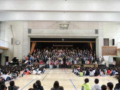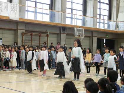 1〜5年生・代表委員から、感謝の思いをこめた出し物、6年生からは合唱・合奏がありました。