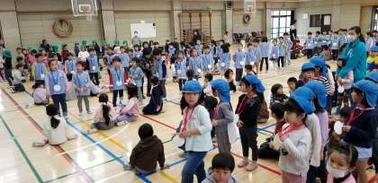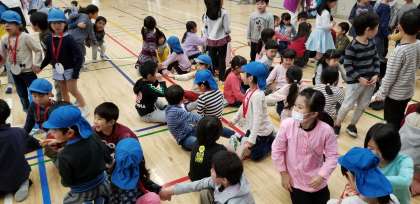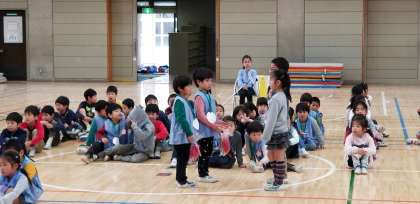 二時間目、体育館で幼稚園・保育園との交流会がありました。