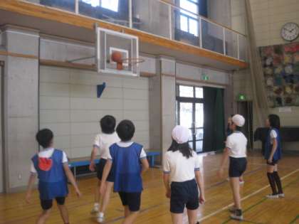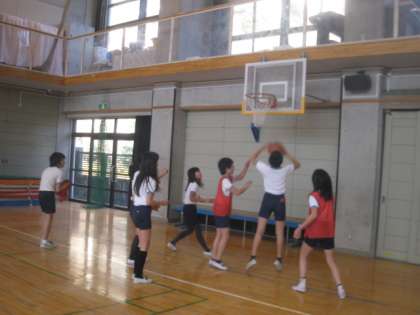 体育のバスケットボールの授業でした。男女仲良くチームワークよくゲームしている姿がよかったです。