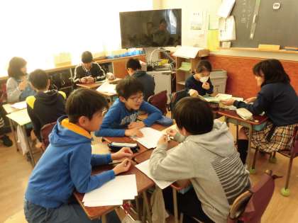 快晴の土曜日、5年生の各教室では、総合のまとめの授業が行われました。