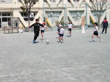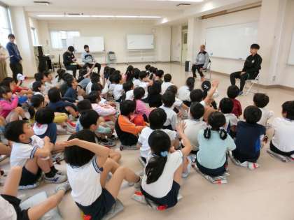 今日はなでしこジャパン代表選手としても活躍する田中美南選手にお越しいただき、2年2組・4組の児童が美南選手の貴重なお話を聞いたり、実際にサッカーの試合に参加したりしました。サッカーを好きになった理由や試合に臨む際の気持ち、美南選手の好きな食べ物などたくさんのお話を聞くことができ、児童たちも興味津々。さらには男女チームに分かれてサッカーの試合を経験することで、サッカーの技術だけではなくチームが一つになって取り組むことの大切さや、なによりスポーツの楽しさをあらためて知る良い機会となりました。