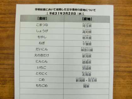 3/20 今日の給食