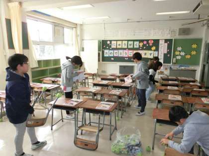 今日は新6年生、2年生の元気な顔が久しぶりに帰ってきました。6年生は始業式や入学式を迎えるために、机の移動や1年生の教室の飾りつけ、教材の準備、体育館の式場設営などなどたくさんの仕事をしてくれました。最高学年としてやる気に満ちており、みんなで気持ちよく準備ができました。2年生は入学式の後の出し物の練習をしました。4月8日は180名の1年生を迎えて1033人で塚戸小学校はスタートします。とっても楽しみです!