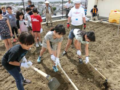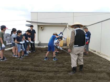 今日は5年生限定の「塚戸チャレンジ(土づくり体験)」がありました。上祖師谷郷土研究会の皆様のご協力で、5年生の稲作り・野菜作りの学習の準備をしました。3チームに分かれ、田んぼの土づくりや畑の雑草取りをみんな一生懸命に行いました。参加した28名の児童も参加した大人たちもとても気持ちのよい汗を流しました。今各教室で籾から発芽させて稲を育てています。6月には今日準備した田んぼに田植えを行います。夏野菜も収穫が楽しみですね。東京で、しかも学校で稲作体験を本格的にできるなんてとても幸せなことです。ご協力いただいた皆様本当にありがとうございました。