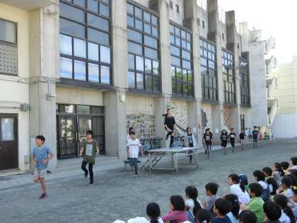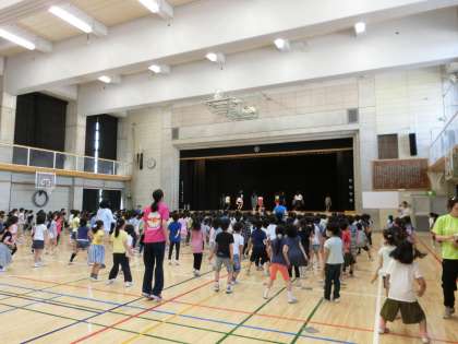 今日は2つの委員会の活動を紹介します。運動委員会は今日の朝の体育集会で、ステップダンスの踊り方を教えてくれました。塚戸小学校では、いつでも楽しく運動ができるように、ステップダンスに取り組んでいます。初回の今日は運動委員のみなさんがお手本となって分かりやすく教えてくれました。