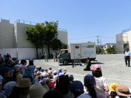 今日はPTA校外委員会主催、ヤマト運輸さんご協力による交通安全教室が行われました。道路には危険がたくさんあること、自転車に乗るときはヘルメットを必ず着用することなどを実演や紙芝居などを交えて分かりやすく教えてくださいました。子どもたちは猛暑で水分補給をしながらでしたが、とてもよい体験ができました。ご協力いただいた保護者の皆様、ヤマト運輸の皆様本当にありがとうございました。