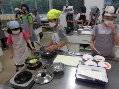 5年生は、ゆでる調理の最後に、カラフルゆで野菜サラダに挑戦しました。