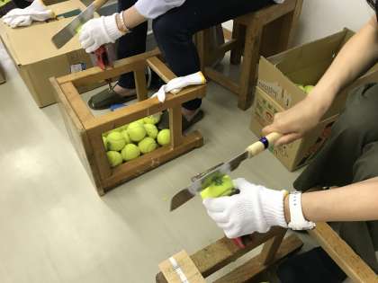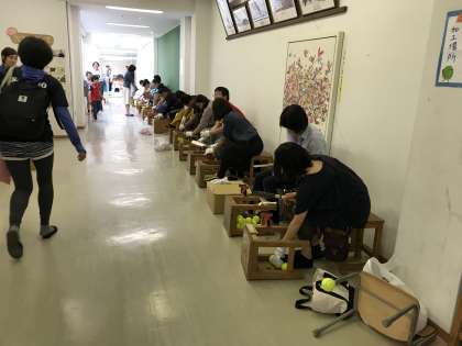 今年も保護者の皆様がテニスボールに切り込みを入れてくださいました。