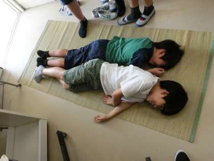 日本の文化であるござを敷くと、休み時間には子どもたちが寝転んで気持ちよさそうでした。