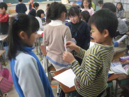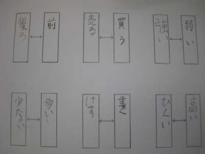 国語の授業でした。反対の意味の言葉を探します。探したて書いたら、問題の出しっこのゲームをします。楽しみながら、反対の意味の言葉を理解していました。