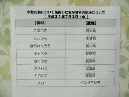 7/3 今日の給食