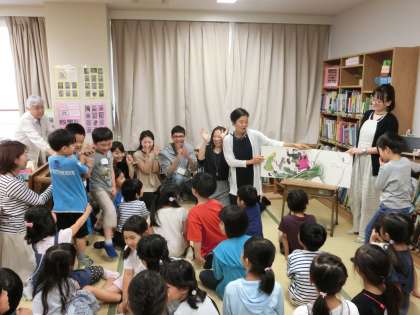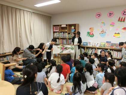 今日の中休みは、図書ボランティアどんぐりさんによる読み聞かせがありました。大型絵本の「大きなかぶ」では、どんぐりさんのうしろに子どもたちがつながって、とっても楽しそうでした。夏休みの7月25日(木)と8月23日(金)ともに10:15〜10:45に「夏休み読み聞かせ」があります。こちらもみんな参加できるといいですね!どんぐりさんありがとうございました。