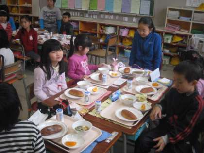 6年生を送る会が終わった後は、各クラスで6年生を招いて、会食と遊びをしました。それぞれのクラスで6年生を招待して、一緒に給食を食べます。その後、クラスで考えた遊びをして楽しみました。6年生と親しくできました。