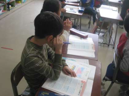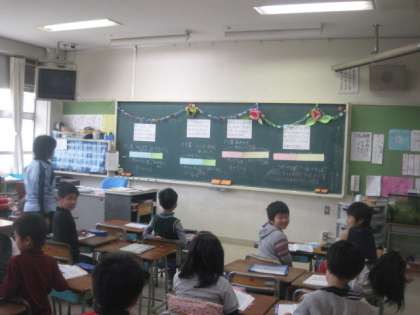 算数の授業でした。たし算やひき算の問題をテープ図を使って考えます。いろいろな意見が出て楽しく勉強している子どもたちでした。