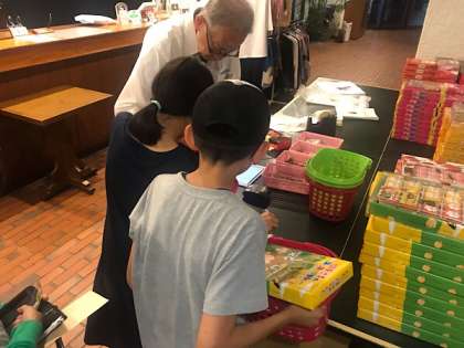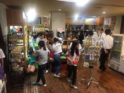 お風呂の時間の裏で思い思いにお土産を選んでいます。2000円にどう収めるか必死です。