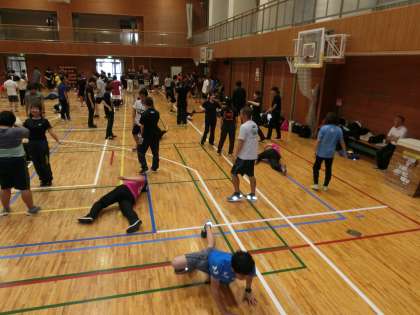昨日のの午後は、6ブロックの体育実技研修会がありました。6ブロック8校の先生方が全員集まり研修を行いました。日本コオーディネーショントレーニング協会理事の菅野 映先生を講師としてお迎えして、「コオーディベーショントレーニング」をテーマに、現代の子どもたちの特性について理解し、誰でも行える体幹の鍛え方を教えていただきました。今後の体育の授業で取り入れていきたいと思います。