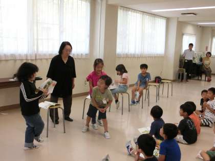 今日の5校時は1年生のひとクラスで、世小研児童文化部の研究授業がありました。楽劇団「いちょう座」の「かめやま ゆたか」先生を講師としてお招きし、国語の「おおきなかぶ」のリーダーズ・シアターを行いました。ナレーターやおじいちゃん役の子たちがとても上手に演技をして、とても楽しい授業となりました。その後の研究協議会でも、より良い授業を今後もしていくために真剣に話し合いが行われました。かめやま先生ありがとうございました。
