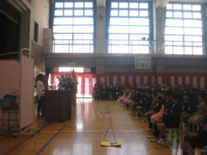 入学式が始まりました。172名の入場です。長い式もお話を聞くことができました。2年生のお兄さん、お姉さんの出し物も立派でした。そして、集合写真を。明日から、ランドセルをしょって登校します。待っているからね。
