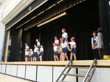 10月5日の運動会まで1週間となりました。「心に届けキセキのエール〜感動のフィナーレへ〜」今日の朝「団体競技紹介集会」を行い、各学年の代表が団体競技を紹介しました。運動会の勝敗を決める団体競技、運動会当日が楽しみです。