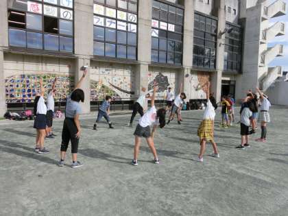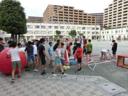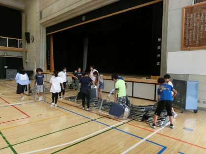 プラカード係、準備整理体操係、用具係などなど、子どもたちは様々なところで活躍しています。目立たない裏方の準備も真剣に取り組んでいました。