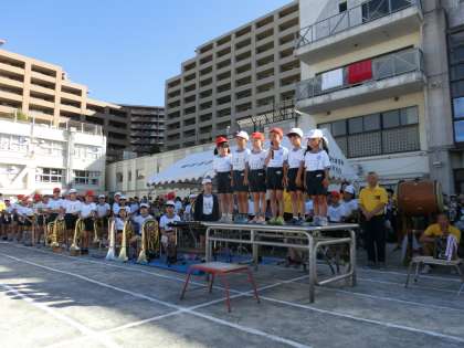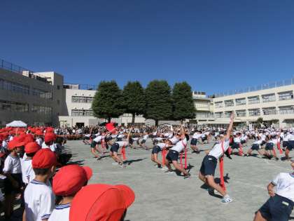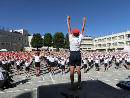 開会式に続き、準備体操、応援合戦と続いていきます。1年生のかわいいけれど、入学からの成長を感じるはじめの言葉、1025人の準備体操、応援団の熱のこもった応援、どれも素晴らしいです。