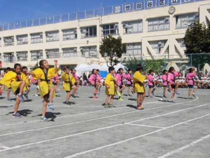 次は4年生の「踊りゃん祭」元気いっぱいに跳びはねながら、鳴子の音を響かせました。息の合った行進も見事でした。