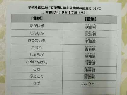 今日は、ごはん、牛乳、さばの塩焼き、切り干し大根の炒り煮、さつまいも汁です。