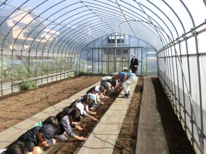 キンモクセイ香る秋晴れの下、3年生が農業体験を行いました。社会科学習の一環として教科書にも登場する高橋さんに、農家の工夫や努力などについて話を聞かせていただいたり、種まきの体験をしたりと充実した時間となりました。3学期には、収穫に行かせていただく予定です。